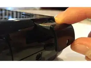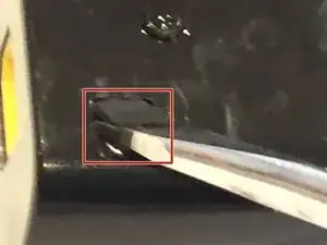 Используя плоскую отвертку, лопатку или пинцет, снимите наклейки, закрывающие винты на дне Wii U и на боковой панели Wii U.