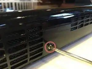 Выверните два винта на боковой панели Wii U рядом с вентиляционными отверстиями крестовой отверткой #00.