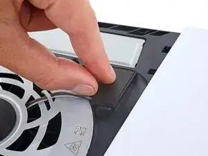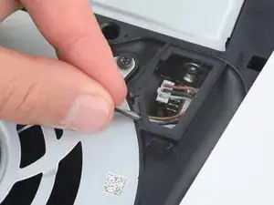 Снимите пластик, скрывающий разъём кабеля вентилятора, пальцами.