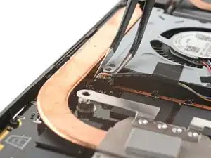Используйте отвертку Phillips, чтобы удалить два винта длиной 3,7 мм, крепящие вентилятор.