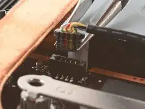 Используйте пинцет, чтобы захватить края разъема вентилятора и потянуть вверх, чтобы отключить его от материнской платы.