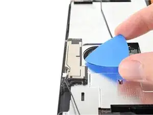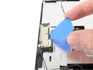 Вставьте открывающий инструмент между вторичной антенной Wi-Fi и защитной пластиной.