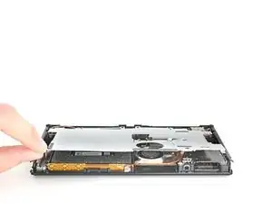 Используйте отвертку Phillips или JIS, чтобы удалить винт длиной 2 мм, крепящий верхнюю часть заднего корпуса к раме.