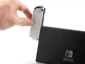 Продолжайте сдвигать Joy Con вверх, пока он полностью не выйдет из консоли.