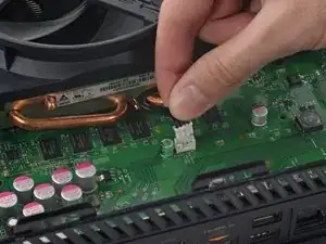 Соединение между верхней и нижней крышками закреплено несколькими защёлками вдоль задней части и оставшейся стороны Xbox.