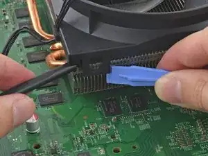 Продолжайте двигаться вдоль задней части Xbox, поддев защёлки.
