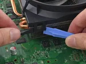 Используйте вставленную лопатку, чтобы поддеть вентилятор и снять его с радиатора.