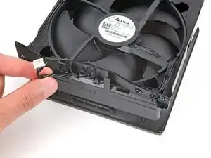 Используйте ногти или пару изогнутых пинцетов, чтобы плотно схватить кромки разъёма кабеля вентилятора.