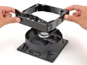 Используйте отвертку Torx T8, чтобы выкрутить четыре винта длиной 9 мм, фиксирующие кронштейн на вентиляторе.