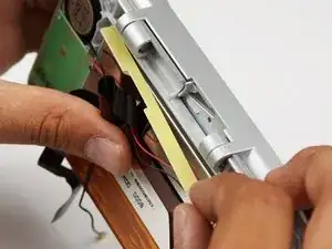 Осторожно извлеките маленький ленточный кабель из разъёма.