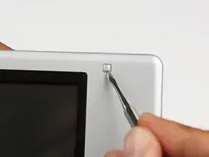 Используйте плоскую отвертку, пинцет, зубочистку или стоматологический инструмент, чтобы снять резиновые заглушки на экране.