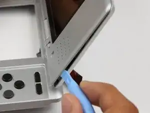 Если на вашей DS прикреплен шнурок, вы можете снять его, чтобы облегчить доступ к верхнему левому винту при открытии.