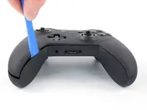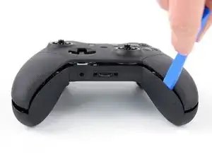 Вставьте инструмент для поддевания в шов между двумя частями корпуса на правом краю контроллера.