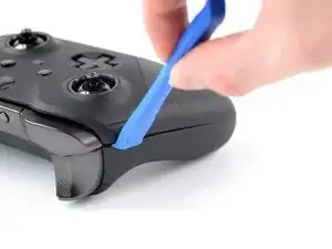 Вставьте инструмент для поддевания в шов между двумя частями корпуса на левом краю контроллера.