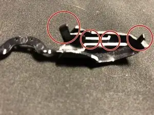 Поместите новую накладку центральной кнопки над портом micro-USB, нажмите центральную кнопку и наденьте накладку на два штырька, показанные на изображении.