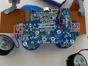 Найдите два паяных контакта, соответствующие неисправному вибрационному двигателю.