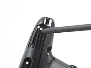 Используйте отвертку JIS #00, чтобы вынуть два чёрных винта длиной 8,4 мм, фиксирующих рукояти, расположенных на концах рукоятей.