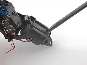 Возьмите кабель левого узла триггера пинцетом или пальцами и отсоедините его от узла триггера.