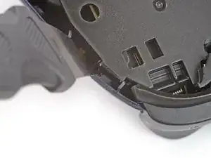 Повторите предыдущую процедуру открытия, чтобы открыть три пластиковые защёлки снаружи левой ручки контроллера.