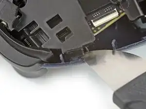 Используйте заострённый конец лопатки, чтобы открыть ZIF-коннектор, удерживающий кабель контактной платы кнопок.