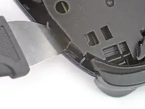 Вставьте лопатку в зазор между передней и задней частями корпуса снаружи внизу левой ручки контроллера.