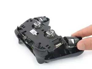 Повторите предыдущую процедуру открытия, чтобы открыть три пластиковые защёлки снаружи правой ручки контроллера.