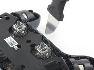 Вставьте лопатку в зазор между передней и задней частями корпуса на правом краю правой ручки контроллера.