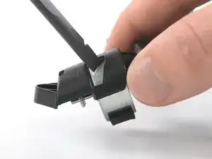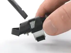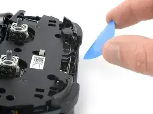 Вставьте кончик медиатора для вскрытия в зазор между пластиковой крышкой винта и задней частью корпуса контроллера.