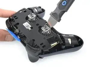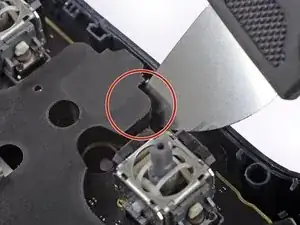 Вставьте лопатку (Jimmy) в зазор между передней и задней частями корпуса с внутренней стороны левой ручки контроллера.