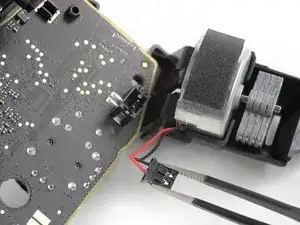 Используйте пинцет, чтобы отсоединить левый вибромотор, вытащив его разъём прямо из гнезда.