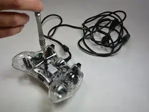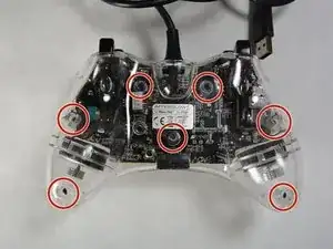 Ослабьте семь винтов Phillips #0 длиной 11 мм, расположенных на задней стороне контроллера.