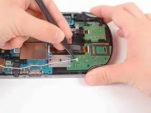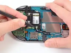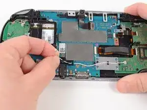 В этом руководстве показан процесс установки Wi‑Fi антенны в PlayStation Vita. Это белый антенный кабель на правой стороне беспроводной платы.