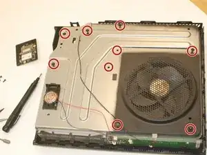 После этого пройдитесь и открутите перечисленные винты, чтобы снять основную металлическую крышку консоли.