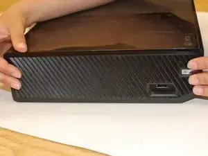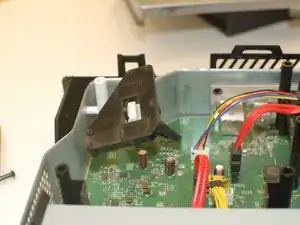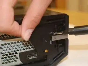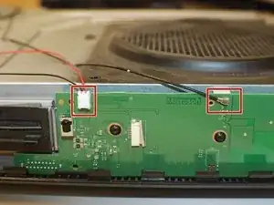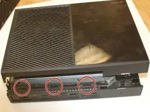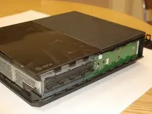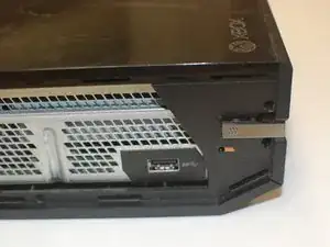 Теперь аккуратно приподнимите заднюю часть Xbox, не снимая переднюю; отсоедините синий плоский шлейф спереди и затем полностью снимите крышку.