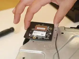 После снятия панели за серебристой кнопкой синхронизации извлеките её крепление, используя отвёртку и сдвигая его в сторону задней части Xbox.
