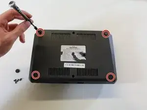 Используйте отвертку Phillips #000, чтобы удалить четыре винта под резиновыми ножками.