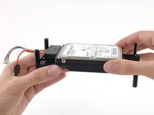 Удалите четыре винта Torx T10 длиной 8,5 мм, закрепляющие узел жёсткого диска в лотке.