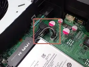 Отсоедините два разъема, расположенных справа от жесткого диска.