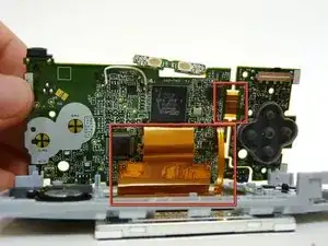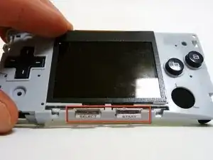Маленький ленточный кабель соединяет кнопки Start и Select с материнской платой. Он очень легко рвётся, поэтому не тяните за него.