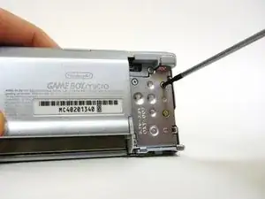 Удалите винт Phillips #00 на боковой стороне Game Boy со стороны, ближайшей к крестовине управления.