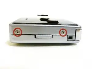 Удалите два винта с трёхкрылой головкой на верхней части Game Boy и два винта рядом с переключателем громкости/контраста.