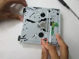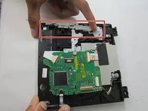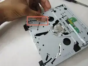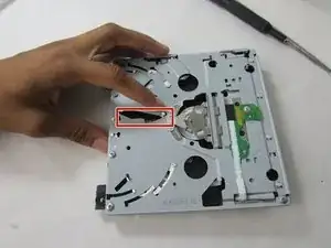 Попробуйте изменить положение белого пластикового компонента, показанного на фото. Если он застрял, это может указывать на поломку внутренних компонентов дискового привода.