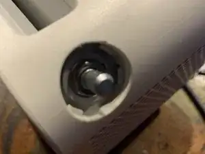 Снимите кнопку, аккуратно вставив лоток и покачивая оранжевый пластик. Затем используйте клещи, чтобы открутить шестигранную гайку.