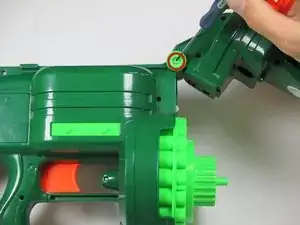 Потяните оранжевый ползунок к задней части оружия, поднимая нос оружия вверх.