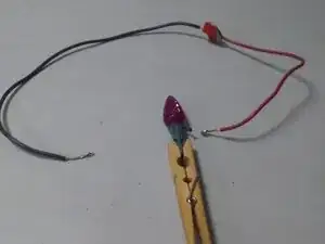 Плоскогубцы оказались для меня неудобны, поэтому я приклеил провода к батарее и использовал прищепку, чтобы зажать лампочку.