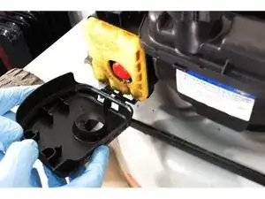 Снова установите крышку, выровняв два нижних зажима в их слотах.