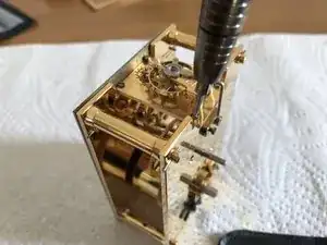 Переносные часы — отличный ввод в обслуживание часов, так как вы видите все работающие части. Через несколько лет масло на опорах испарится или загустеет и соберёт удивительное количество грязи. В этот момент часы перестанут работать так долго, как должны, или вообще перестанут идти. Сервисная чистка должна вернуть им исправное состояние.