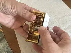 Заведите часы и убедитесь, что они работают. Когда вы покажете, что они идут всю неделю, можно приклеить или заменить фетровую подкладку на основании.