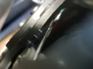 Верхняя крышка снята. Посмотрите сверху на направляющие: они не зафиксированы. Надавите на направляющую вниз, чтобы нижняя могла вернуться на место. Повторите для внешней и внутренней направляющих.