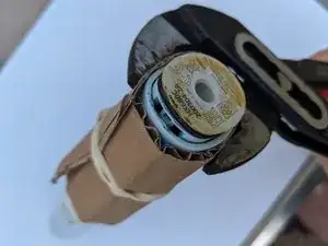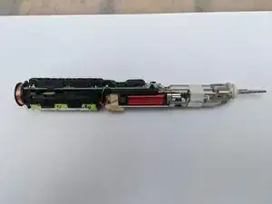 Существуют 2 защелки, которые предотвращают выдвижение внутренних частей. Освободите их с помощью маленькой отвертки, одновременно нажимая на металлический стержень с другого конца. Когда обе защелки будут свободны, внутренности выйдут наружу.